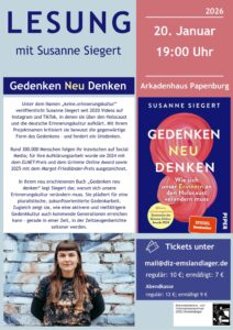 Auch in diesem Jahr bietet die Gedenkstätte Esterwegen in der Ferienzeit wieder zusätzliche Kurzführungen auf dem Außengelände der Gedenkstätte Esterwegen an. Die Führungen von ca. 1 Stunde finden draußen auf dem ehemaligen Lagergelände statt.