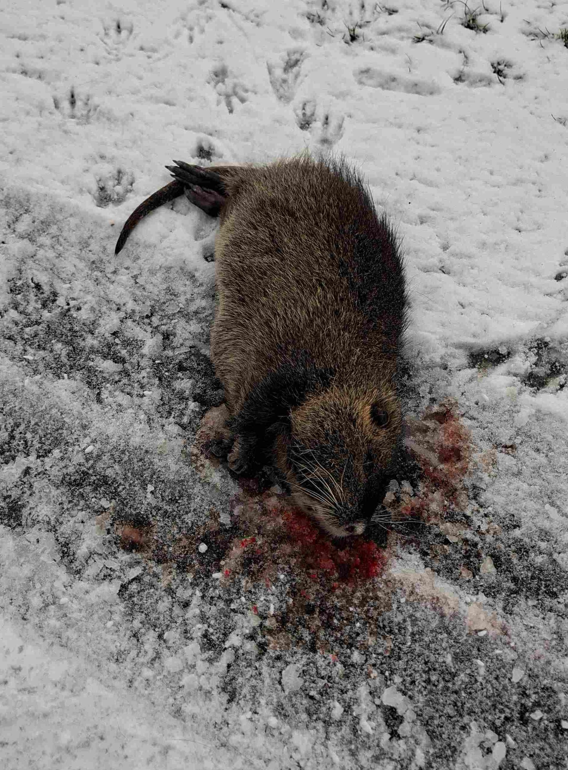 Aus der freien Fläche am Kopf ist zu schließen, dass das Tier mit den Vorderläufen über den Boden geschart hat. Somit dürfte es ein langer Todeskampf gewesen sein, bis das Tier verendet ist.